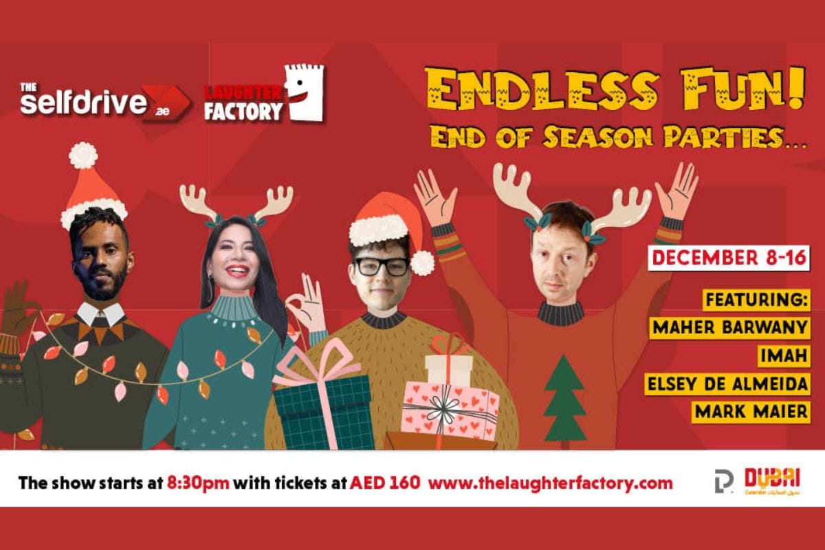 The Selfdrive Laughter Factory is set to bring a memorable night of comedy to the UAE in December 2023, ideal for both friends and office parties. The lineup includes some of the funniest comics globally, promising non-stop laughter. The event will feature a blend of laughing, drinking, eating, and cavorting, ensuring a festive and entertaining atmosphere.