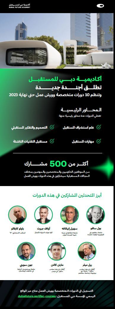 Dubai Future Academy (DFAc), an initiative led by Dubai Future Foundation (DFF), announced the hosting of ten specialist courses and programmes in the coming four months.