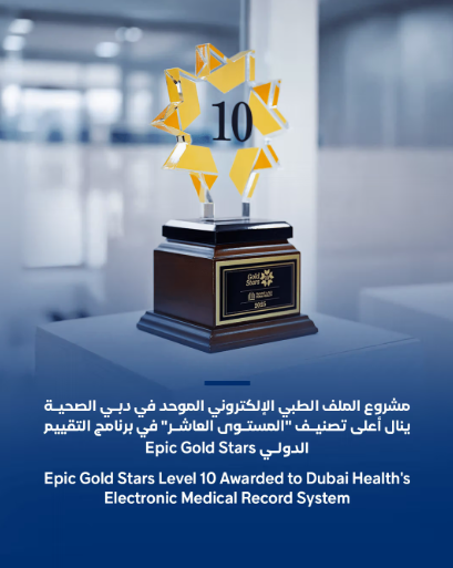 Dubai Health has achieved the Epic Gold Stars Level 10 designation for its Electronic Medical Record (EMR) system, placing it among the top 3% of healthcare institutions worldwide using Epic.