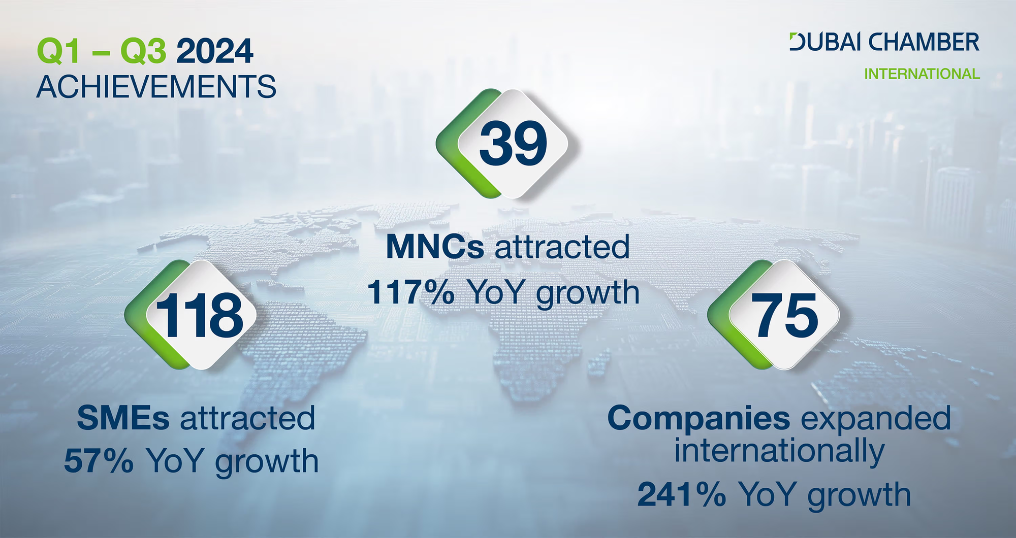 Between Q1 and Q3 2024, the chamber attracted 157 companies to Dubai, a 68.8% rise from the previous year. This included 39 multinational corporations (MNCs), a 117% increase from 2023, and 118 small and medium-sized enterprises (SMEs), marking a 57% year-on-year growth. These results highlight Dubai's position as a leading global investment hub.
