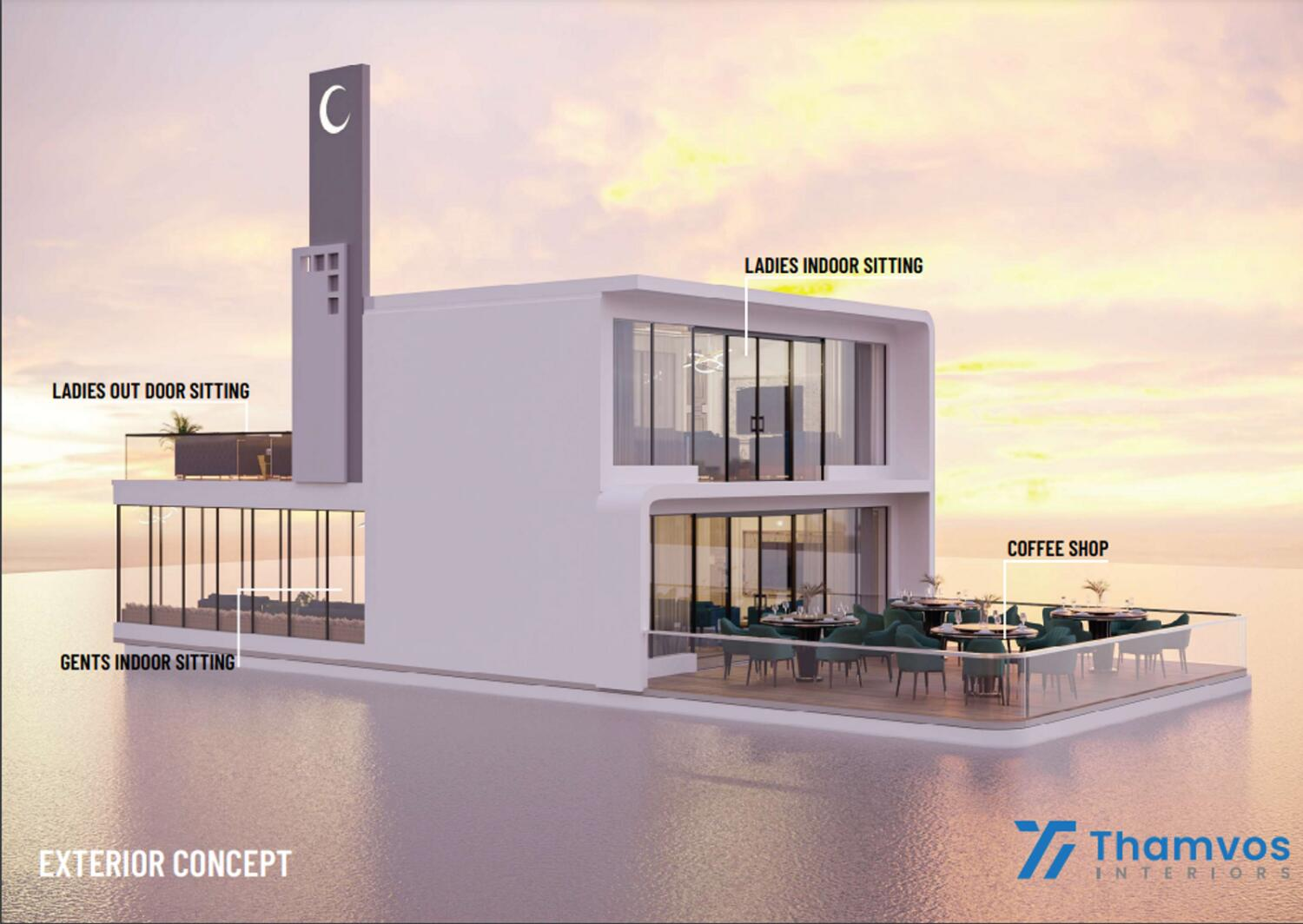 It will be the first floating mosque in the world which will consist of three floors. One half of the structure with its sitting areas and a coffee shop will be above the water; while the other is submerged below. The underwater deck will be for the prayer area with ablution and toilet facilities and can accommodate 50-75 worshippers. The mosque will be constructed with a total cost of approximately Dh55 million.