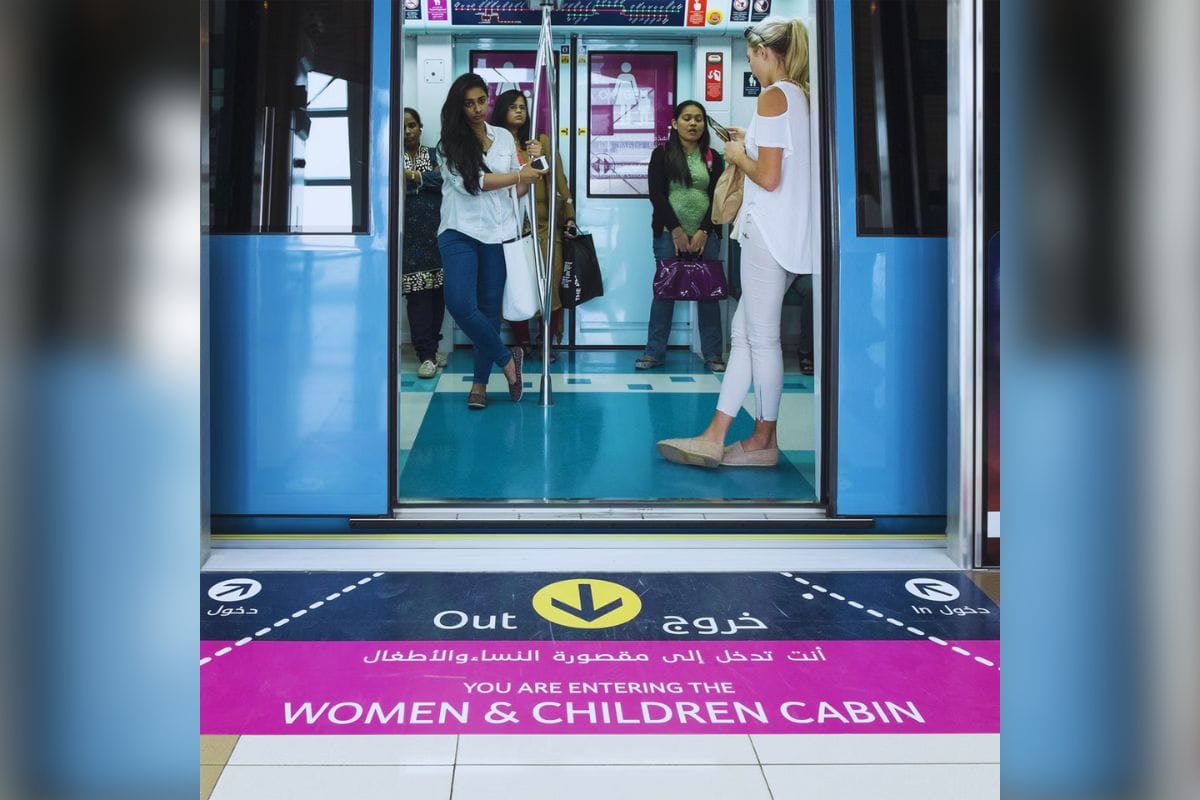 While Dubai Metro provides special cabins for women and children, marked with pink signs, women are not required to use these cabins. They are an option for those seeking more space or comfort.