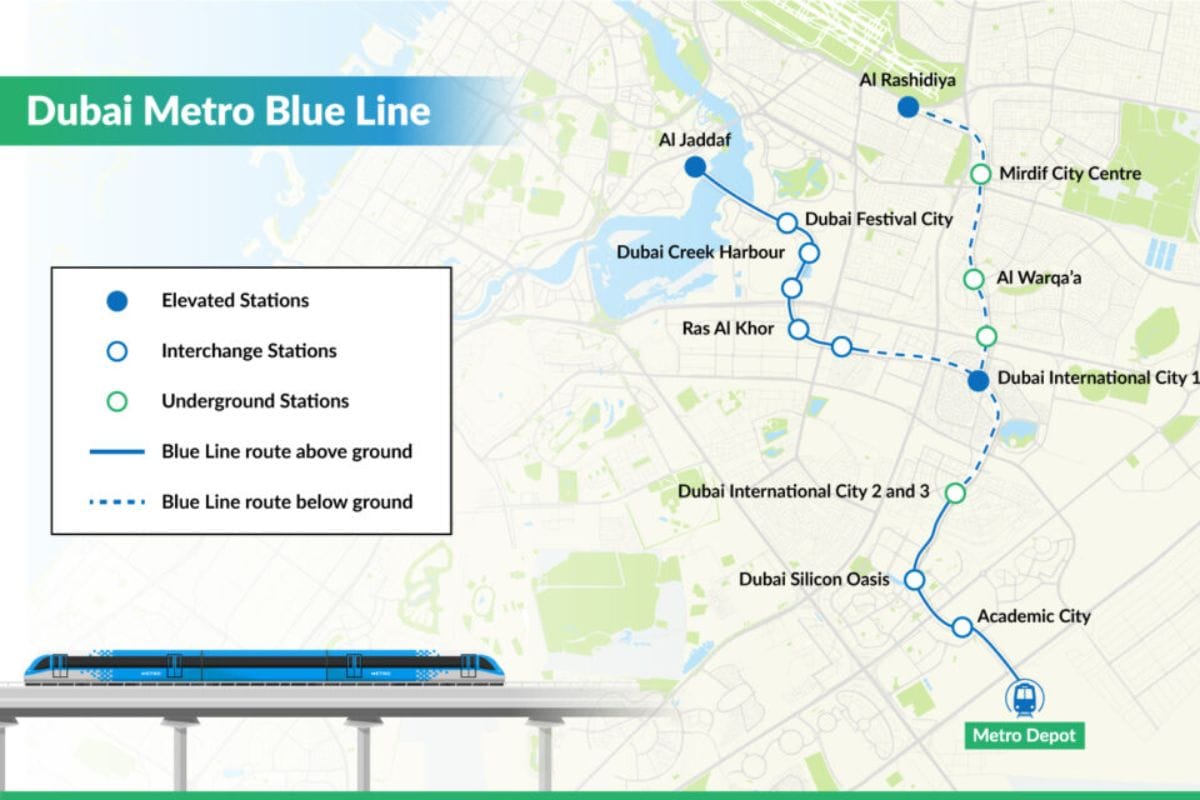 - Route Expansion: The Blue Line will extend the metro network by an additional 30 kilometers, integrating 14 new metro stations into the northeast side of Dubai.