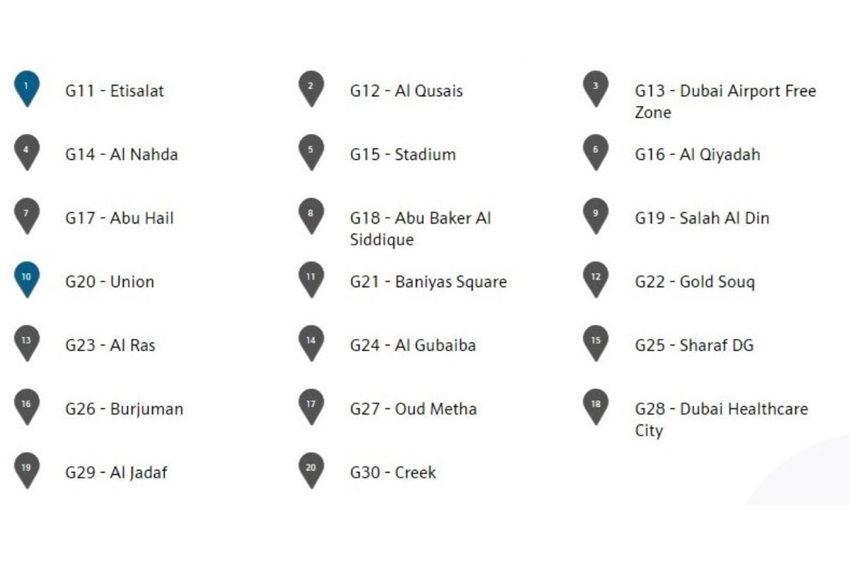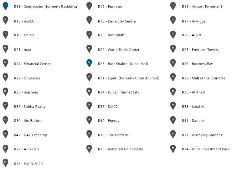 - Terminates at UAE Exchange station, located beyond the Jebel Ali Industrial Area.