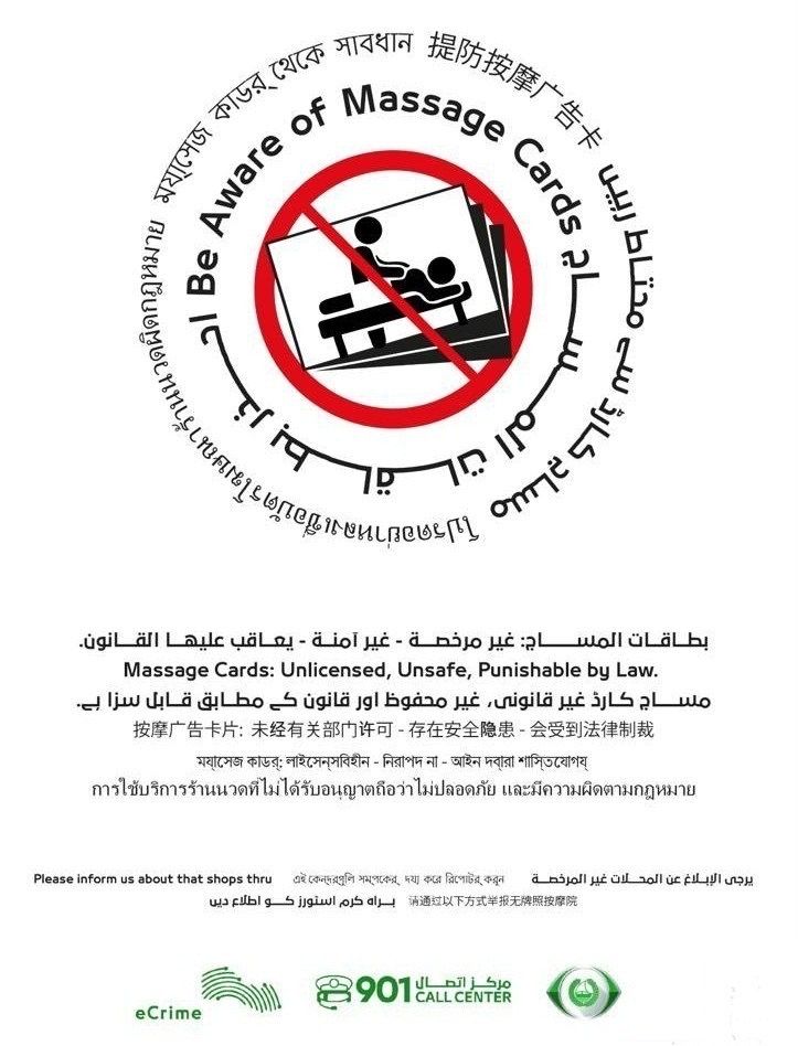 The Dubai Police has launched a campaign to raise public awareness on unlicensed massage centres that pose serious threats to whoever seeks their risky and illegal services.