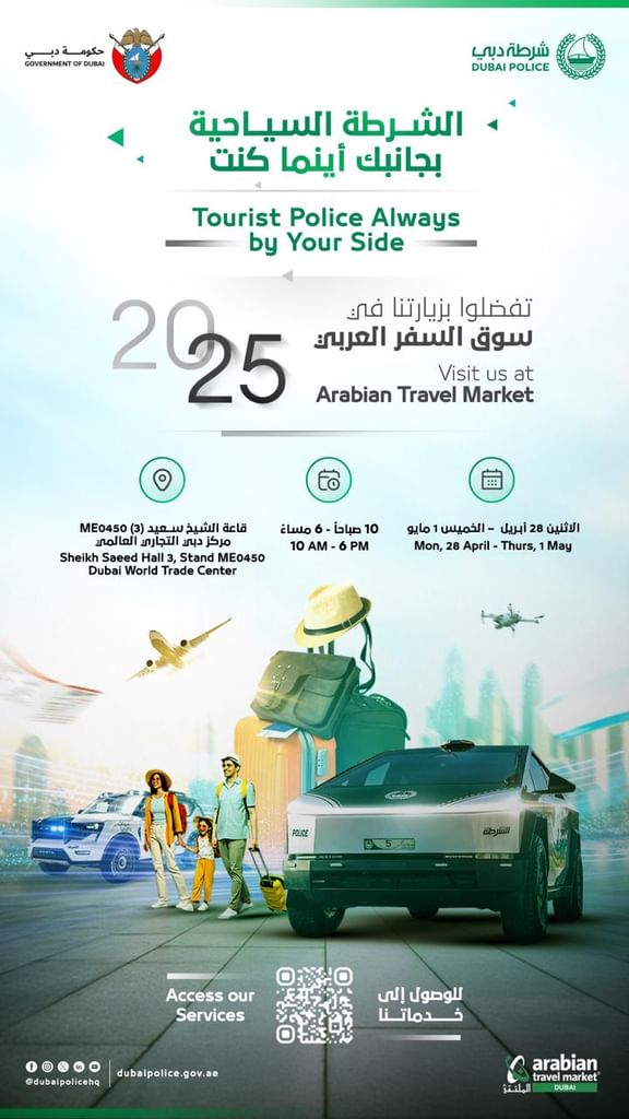 Dubai Police will spotlight its cutting-edge tourism safety initiatives at Arabian Travel Market (ATM) 2025, which opens Monday at the Dubai World Trade Centre.