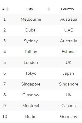 Dubai was ranked second, while Melbourne topped the list!
