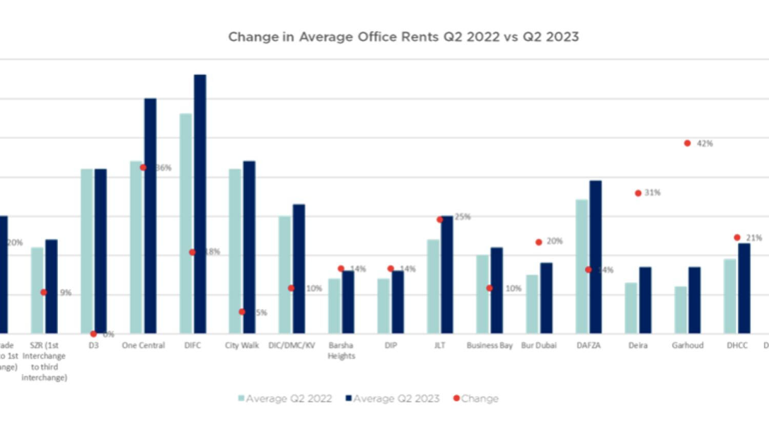 We have seen rental increases to be higher in districts where most of the office stock is strata (an office building owned by multiple owners) as they were rising from a significantly low base compared to Freezone-owned and single-landlord stock.