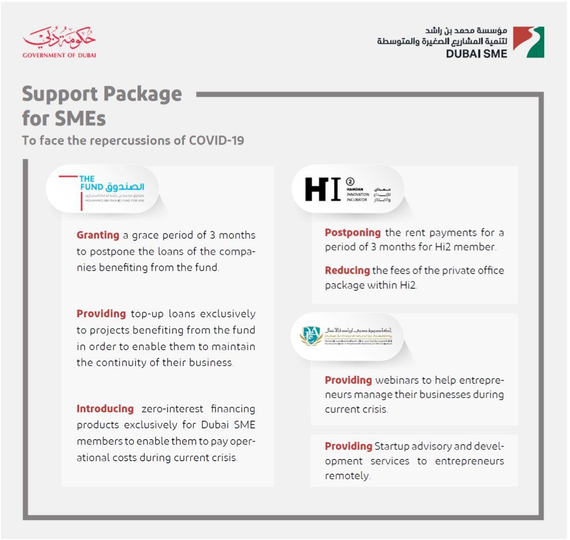 The Mohammed Bin Rashid Fund for SME (The Fund), the financial arm of Dubai SME, has also announced a comprehensive support package, including loans to support business continuity of projects benefitting from The Fund as well as a three-month grace period for loan repayments and easier access to financing for more SMEs. The Fund will offer zero-interest financing to Dubai SME members struggling to meet obligations relating to operational expenses, such as salaries and rents, in addition to online financial consultancy for entrepreneurial projects.