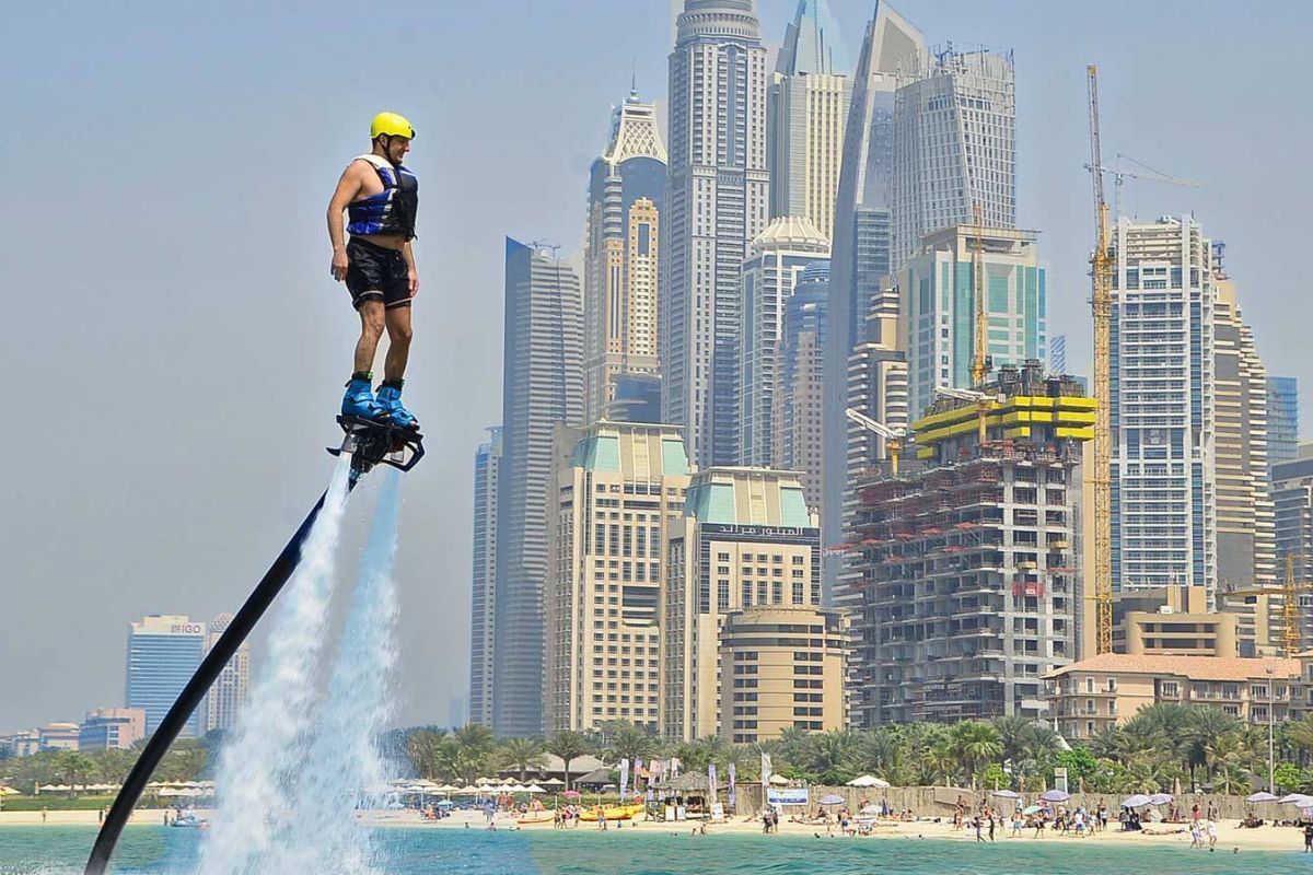 Flyboarding is a very exciting adventure sport to try out in the waters. This thrilling activity combines the rush of water jet propulsion and the excitement of flying. Flyboarding offers you the experience of flying freely above the water like you have superpowers. You can also enjoy fascinating views of the Dubai skyline and coastline during the ride.