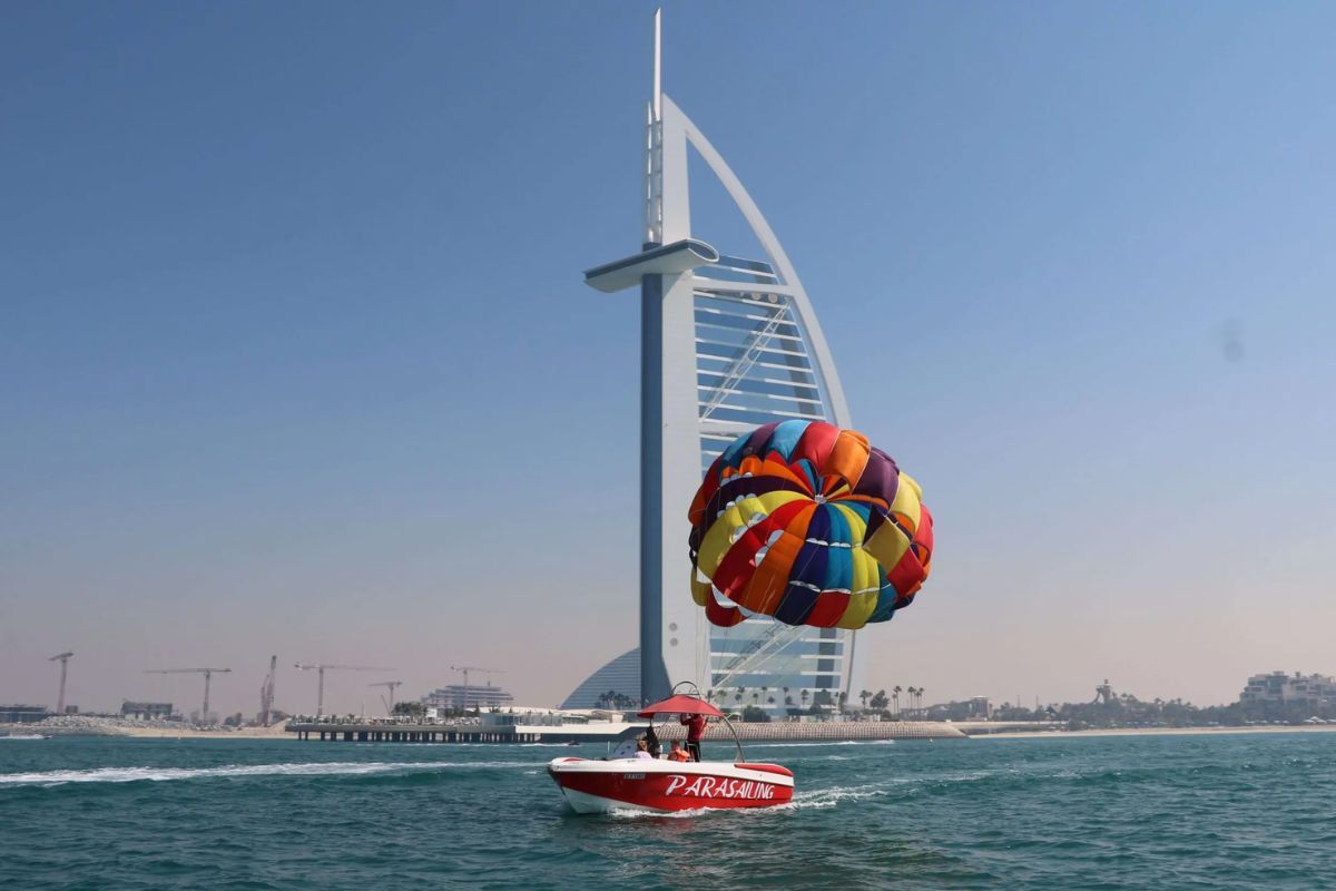 Parasailing is a beginner-friendly water sport. A parasail is a specialized type of parachute that is steered by a boat. It rises in the air alongside the boat and provides breathtaking views of Dubai's entire city. You can glide through the air effortlessly as the control of the boat is in the hands of an expert.