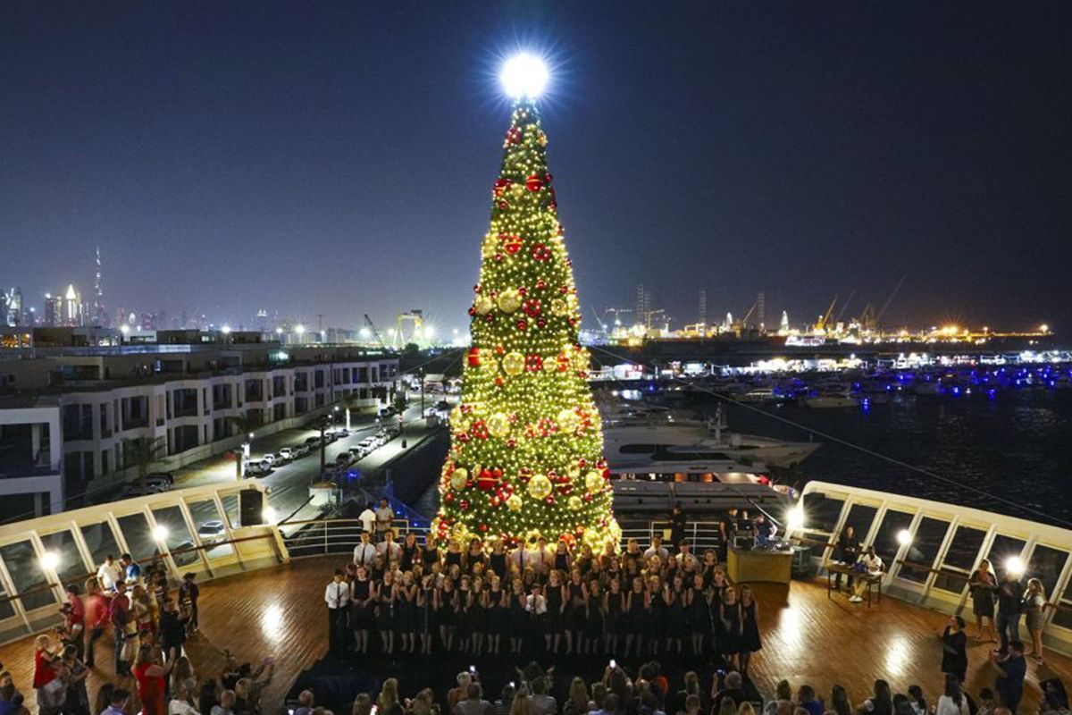 In December, Dubai's mild and pleasant climate makes it the perfect winter getaway destination. The city magically transforms into a Christmas wonderland immediately following the UAE's National Day on December 2nd, with colorful lights, events, and activities taking over the streets.