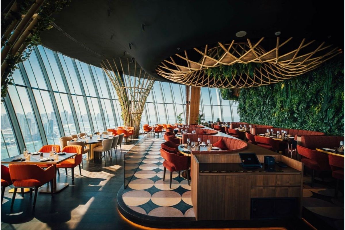 Meshico located at The Pointe, offers terrific views of Atlantis the Palm. Its trendy interiors and housing the biggest selection of Mexican short drinks in UAE will surely entice anyone to visit. The venue is spread out over two floors and has a colorful interior as well as top-floor views of the water. The interiors have a Latino flair, from the 300-hanging hummingbird alebrijes to the glass piata chandeliers. Several traditional dishes are offered on the menu, including tostadas, street-style corn, ceviche, and Mexican cheese fondue. A variety of salads and tacos are also available, with options like grilled skirt steak, roasted bone marrow, and pacific shrimp. Mexican beef stew and rotisserie-grilled meats are common items on large plates.