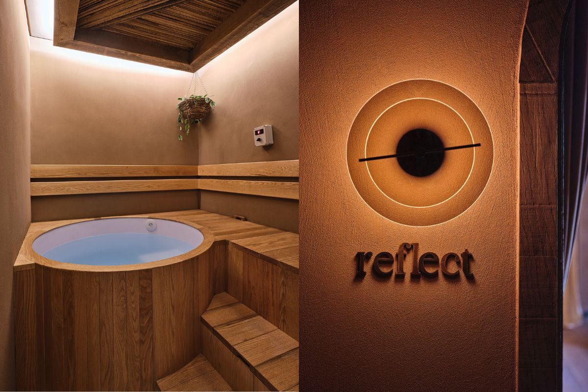Stepping inside this sanctuary, you'll be greeted by a visual feast of natural textures representing the four elements of nature: fire, earth, water, and air. The premises boast two distinct yoga studios—Reflect, complete with infrared heaters, and Connect, which gracefully extends into the garden during the cooler months.