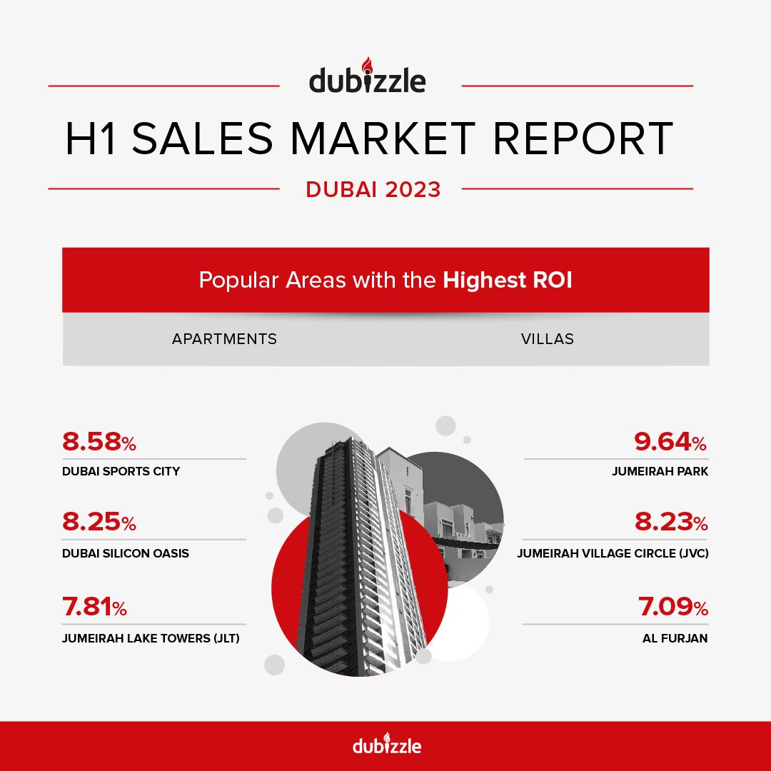 Overall, the property prices and the ROI have increased in Dubai during the first half of 2023. All the popular areas have offered more than 5% rental yields making it an attractive option for investors.