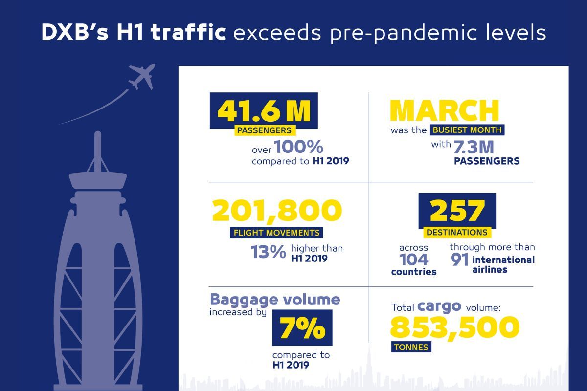 Dubai International (DXB) celebrates a significant milestone in its recovery with passenger traffic for the first half of the year surpassing 2019 levels.