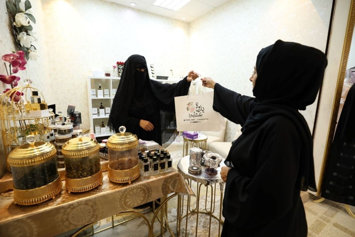 The pavilion also contains (4) productive projects for social security beneficiaries in the ministry and (3) projects for people of determination. The outlets offer a variety of products such as: garments and accessories, perfumes, body care products, handicraft and heritage products, printing and art projects, furniture and furnishings.