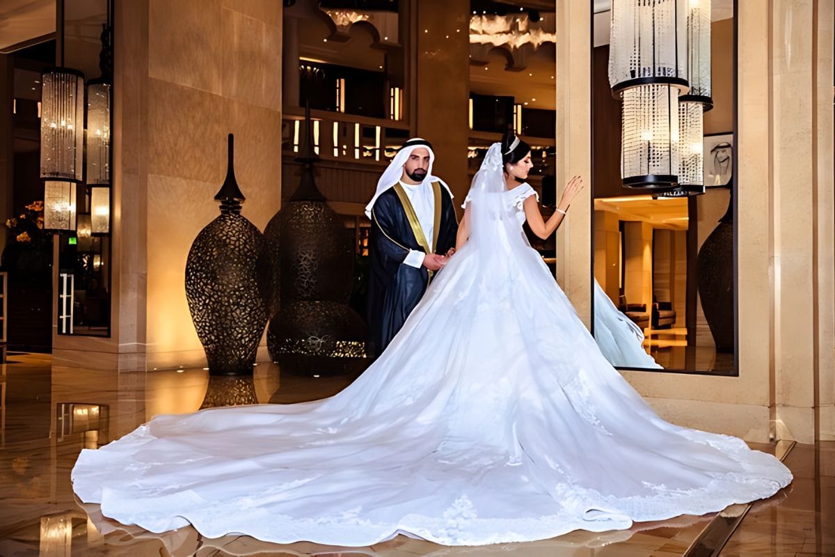 Emirati weddings take extravagance to the next level in their attire. On such a special day, both the bride and groom make sure they look their absolute best. With luxurious fabrics and intricate designs, Emirati wedding attire often includes traditional elements such as intricate embroidery and designs.