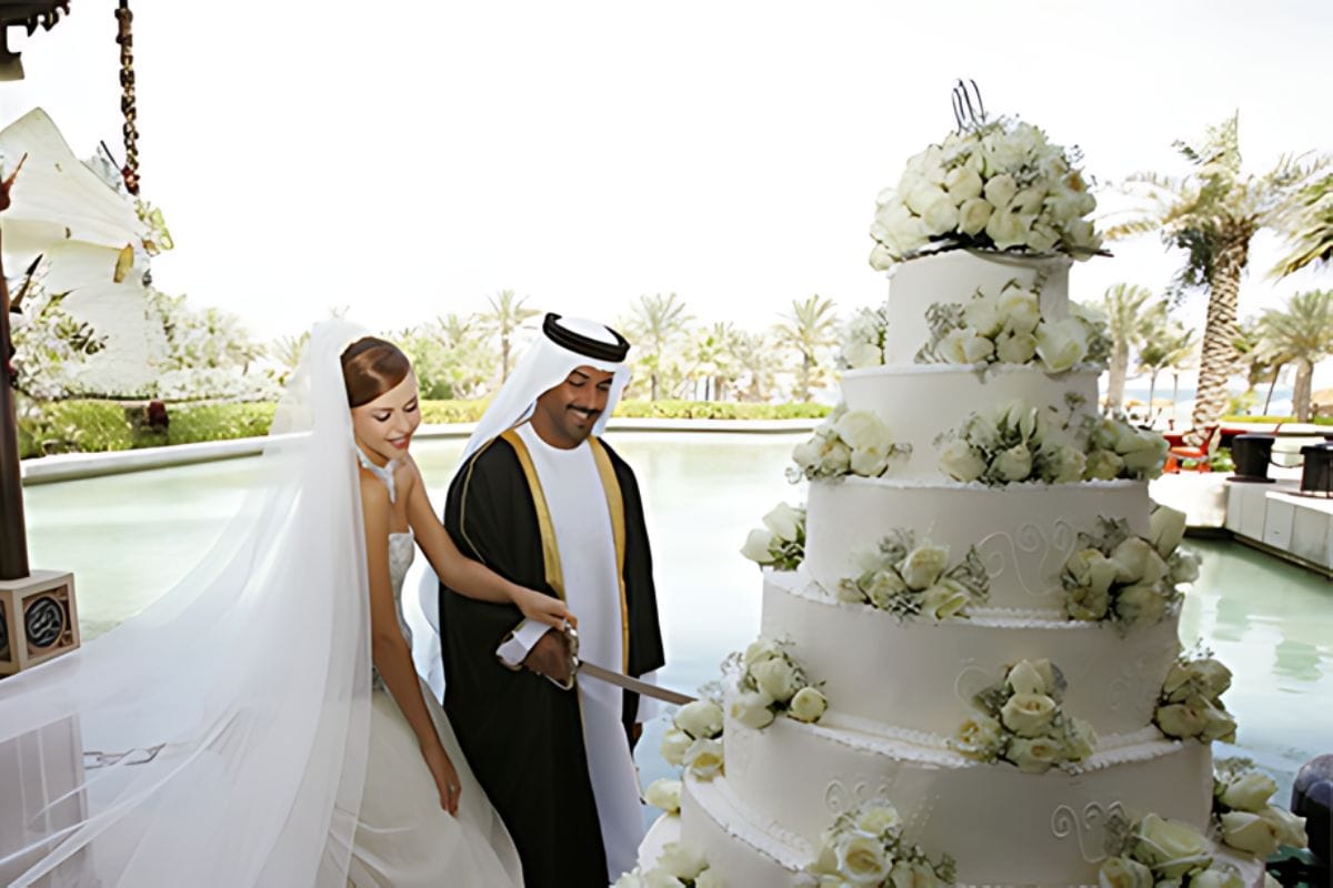 Just like with their celebrations and attire, Emiratis go above and beyond for their wedding cakes; nothing below three tiers! These towering cakes are designed with the most intricate designs and flavors. Not only are they delicious, but they symbolize a brand new chapter of sweetness in the newlyweds' lives.