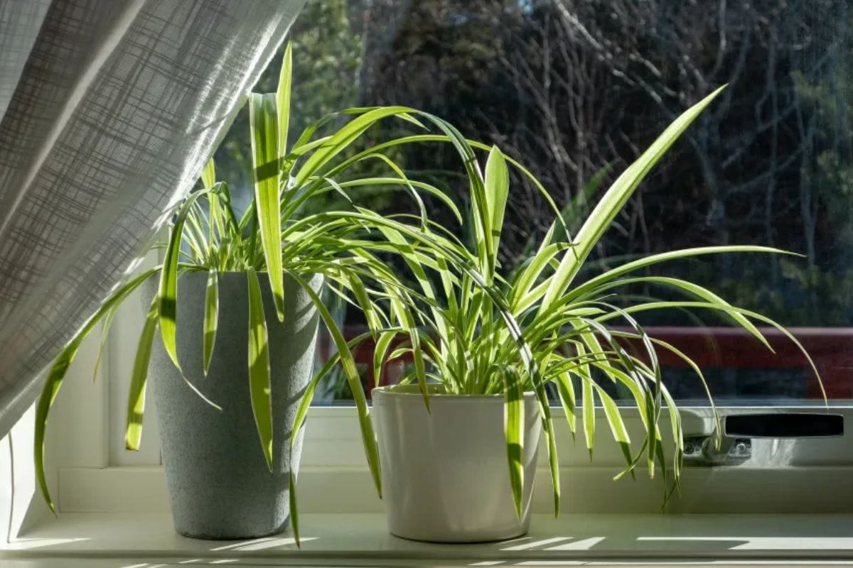 Spider plants are hearty and fast-growing, perfect for hanging baskets and high shelves.