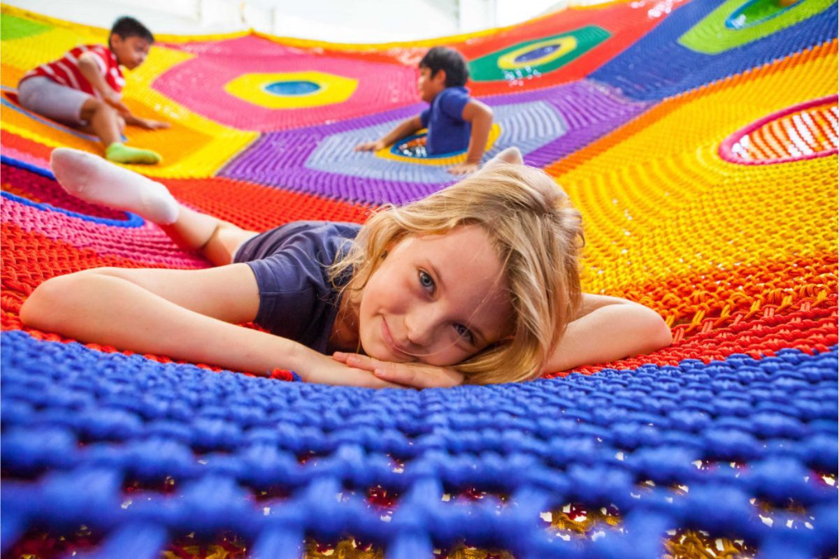 Toshi’s Net is all about fun. You can have all the excitement you experience on trampolines, the excitement you have on a playground, and also experience Alice in Wonderland-like adventures. This is one of the most vibrant-looking galleries with the major portion of the gallery filled with colorful woven strings that can hold up to 29 baby elephants.