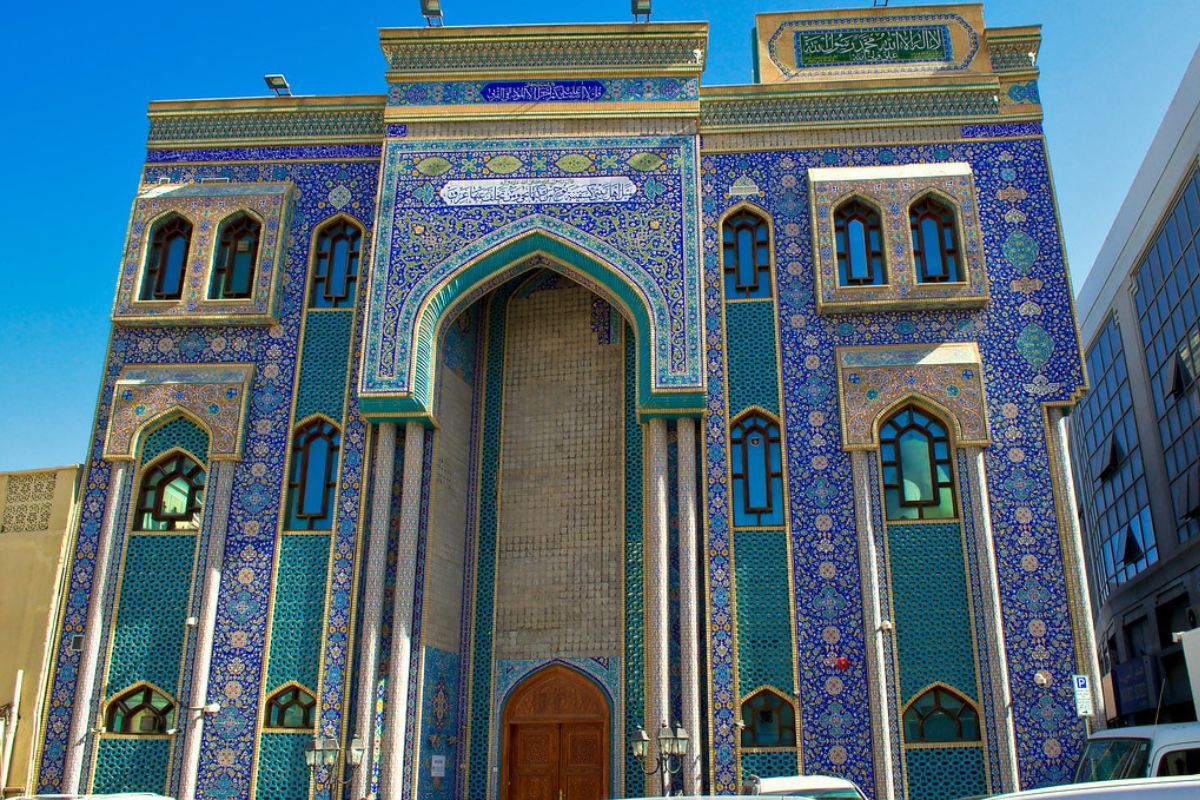 This is one of the most well-known Shia mosques in Dubai, and it is situated on Al Wasl Road in Jumeirah. The architecture is influenced by Persian and quasi-Fatimid styles. Traditional blue tiles adorn the mosque's exterior and dome, and the interior also features these eye-catching blue tiles with green and gold accents and Arabic text written over them. The mosque has several rooms, including a sizable library with volumes in Arabic, Persian, Urdu, and English, among other subjects and languages.