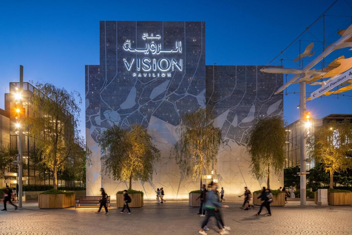 The Vision Pavilion is located in the Sustainability District, on Ghaf Avenue. The Vision Pavillion takes us back on memory lane to the history of a desert inhabited by nomadic people that turned around through a project of innovative change after the oil boom in the 1960s. It is the incredible story of the U.A.E. and the formation of Dubai's modern City.