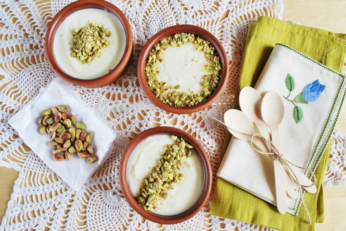 Muhallabiya is an Arabic dessert that has its origins in Persia. This dish is popular in Dubai during Ramadan on Iftar spreads. Muhallabiya is similar to milk pudding and is made with rice, sugar, corn flour, and milk. The jelly-like texture is derived from rice flour, corn starch, or semolina. The pudding also is slightly flavored with rose water. The dessert is topped with nuts, fruits, and cream. Muhallabiya is known by different names like mahalabia, muhallebi, and mahallabiyeh in various parts of the Levant region.