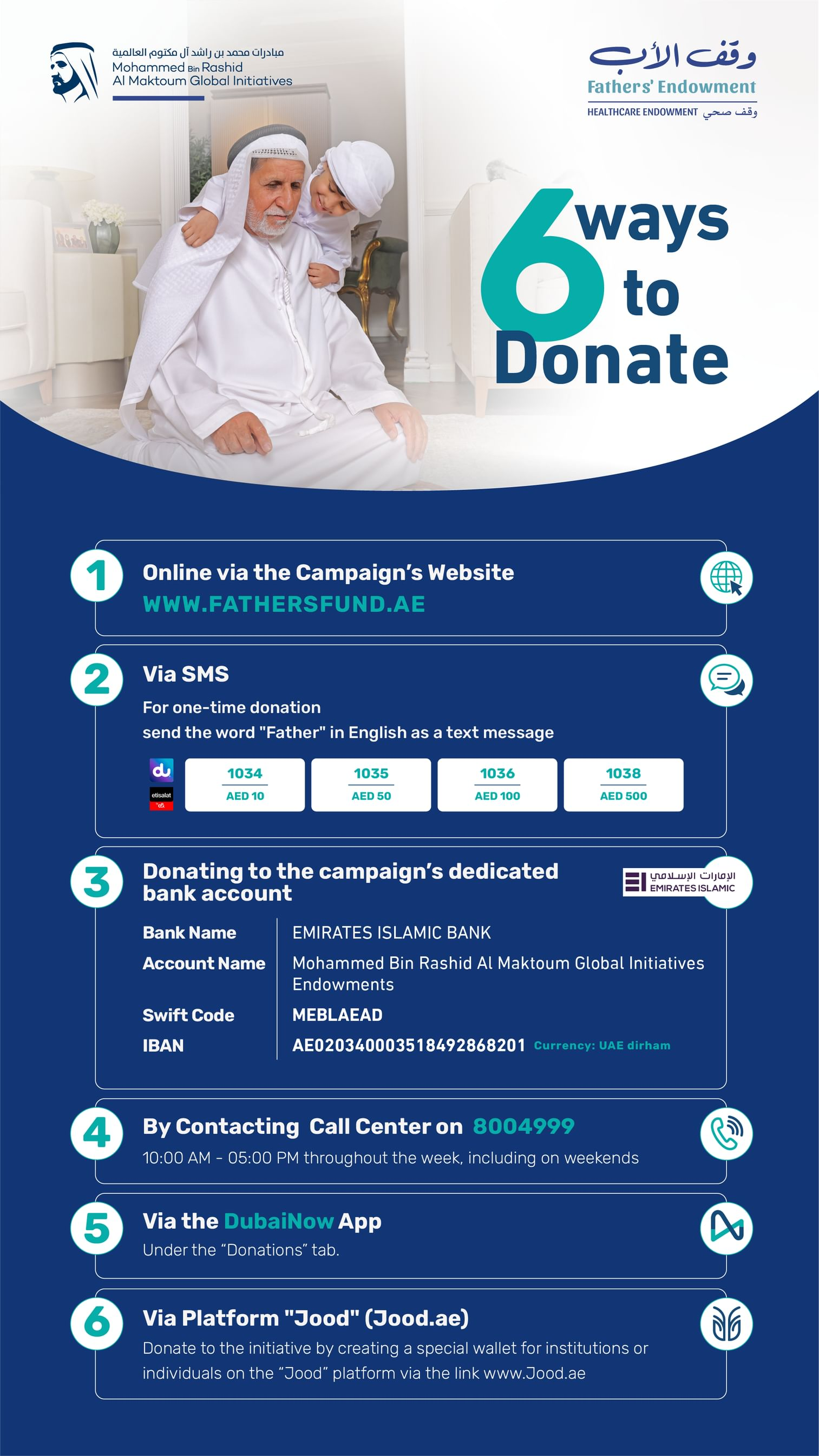 - Website: Contributions can be made at Fathersfund.ae (available for donors inside and outside the UAE).
