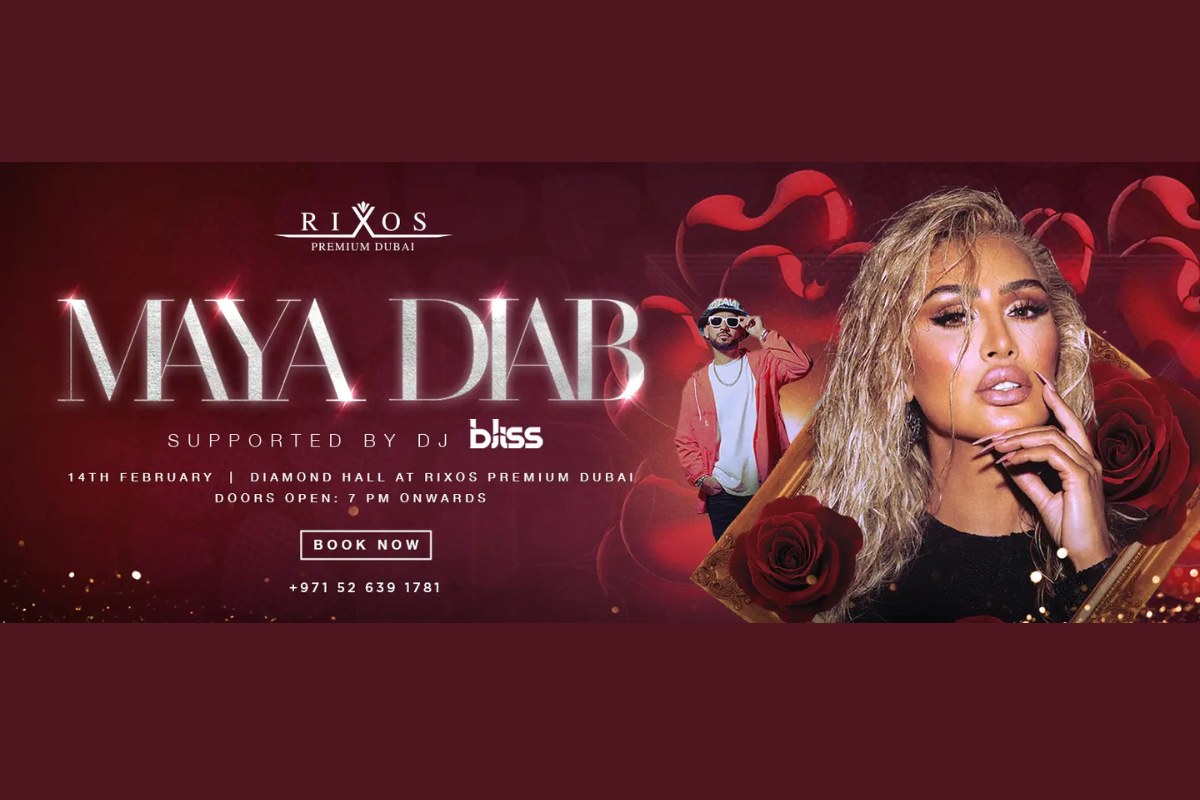 This Valentine's Day, surprise your partner with an unforgettable musical event and experience. Maya Diab, the Lebanese pop sensation, will perform her most popular hits including Sawa, Gatifin, Keda Bardou, Away, Amelli Antar, Asmar Ya Helo, Layliyi, Ahla Kalam, and more. To make the most of the month's most romantic day, this exclusive intimate show also includes a four-course meal with unlimited beverages. After that, you can dance the night away with DJ Bliss at an after party. With this one-of-a-kind event in Dubai, you'll have the best Valentine's Day ever!