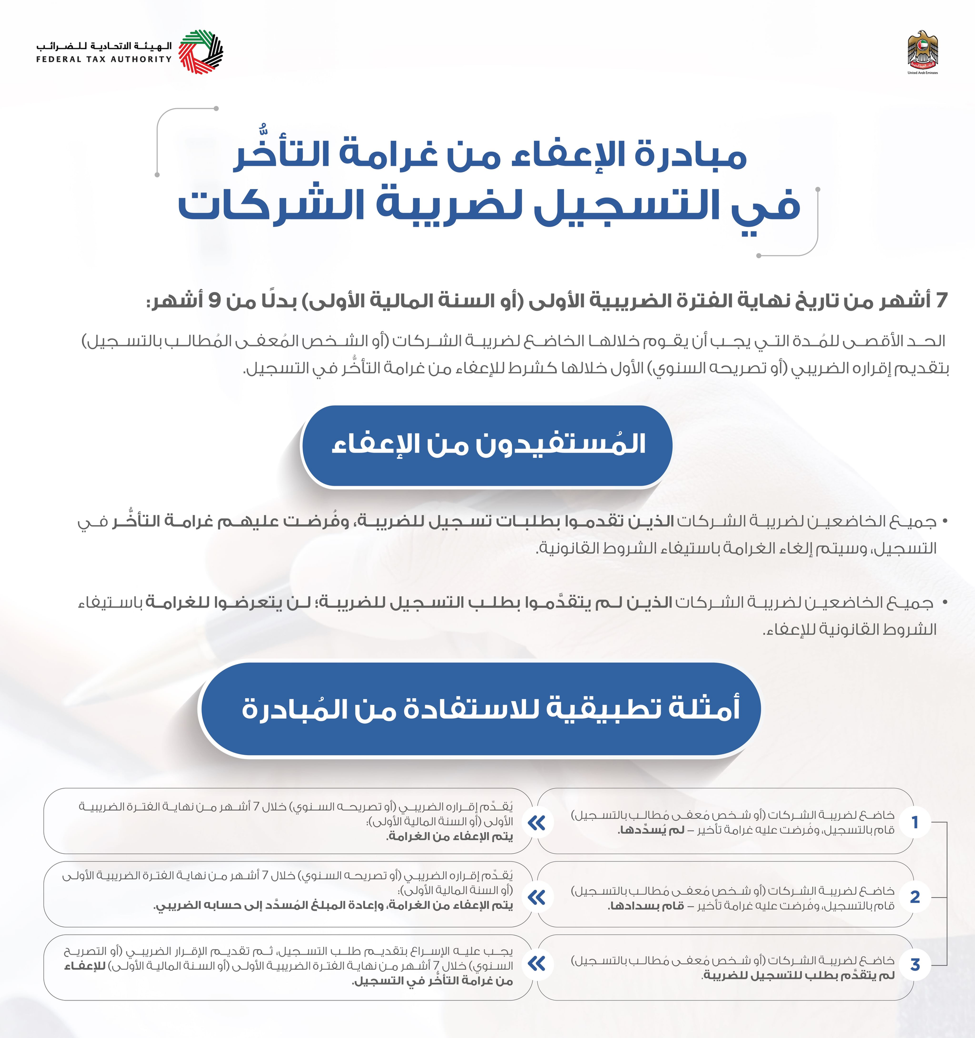 The exemption applies to all taxable entities—whether they have registered late, paid the penalty, or not registered yet—provided they submit their tax returns within the specified seven-month window. Businesses are encouraged to review the relevant laws and guidelines available on the FTA’s official website.