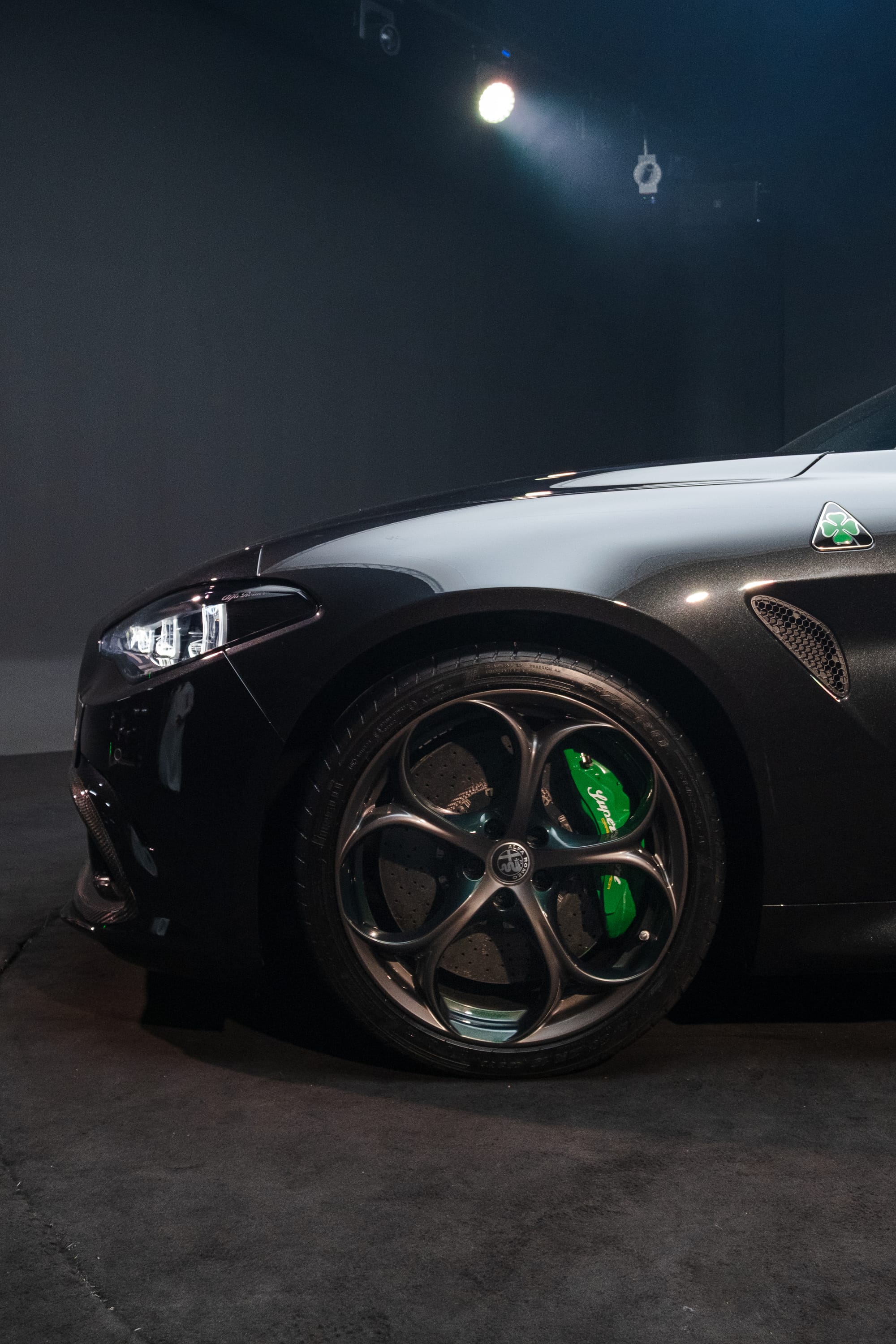 - Bespoke Two-Tone Wheels with green-painted calipers
