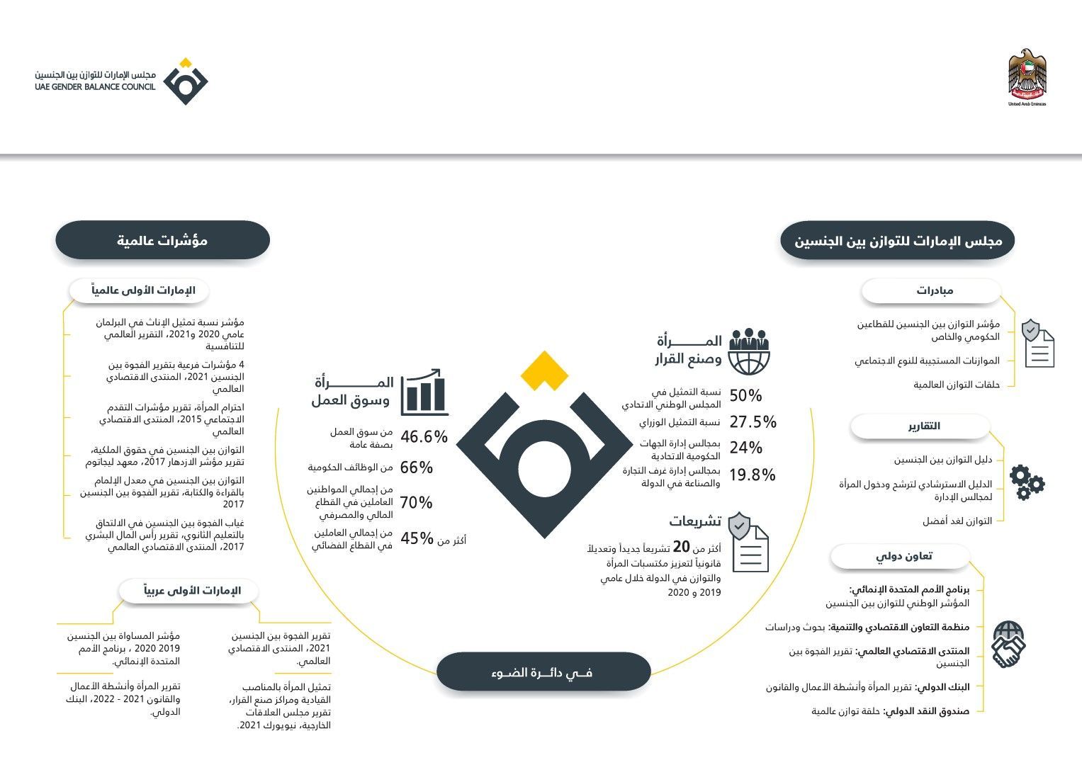 It also launches pioneering initiatives and projects to enhance gender balance throughout the country and contribute to achieving the Council’s vision of positioning the UAE as a world model for gender balance.