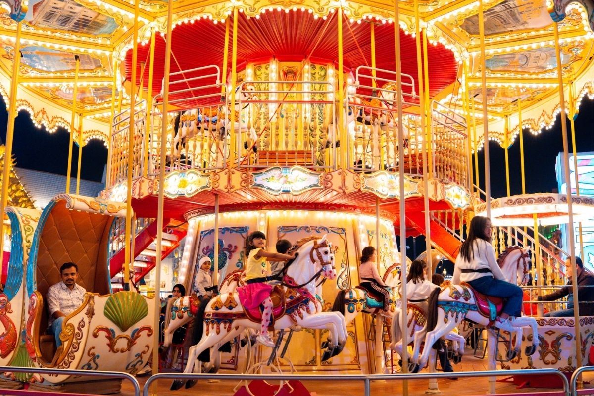 As you enter Global Village, it's hard to miss the gigantic Ferris wheel in the middle of the park. The Ferris wheel stands tall as it towers over all the attractions, essentially illuminating the entire area. The wheel is placed among countless other rides. Each ride in Global Village is designed to cater to different age groups and preferences, from adrenaline-pumping rollercoasters to gentle carousels. Additionally, Global Village has fireworks every night, completely transforming the sky into a mesmerizing spectacle of lights and colors!