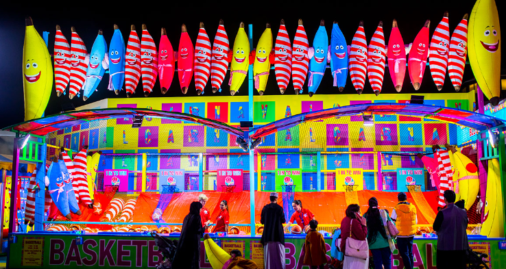 At The Carnaval, you can see many stalls where you can show off your skills at aiming or shooting. These arcade and skill-based games will fetch you great prices like stuffed toys, iPhones, or PlayStation. Adults and children look forward to this activity to win big at Global Village.