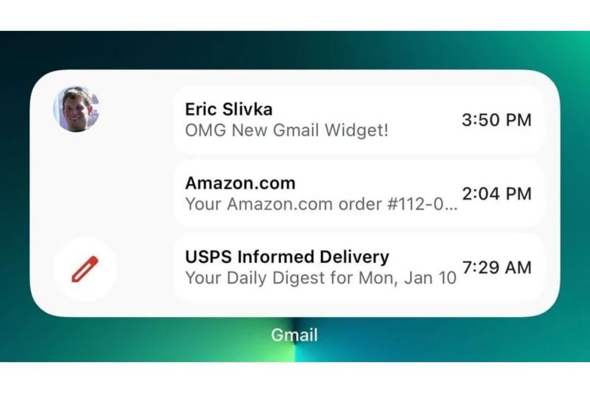 The new Gmail widget displays the last three emails in the Gmail inbox, along with a button to compose a new email. The widget joins the existing widget that displays a compose button, a search interface, and lets users know how many unread emails are in the inbox.