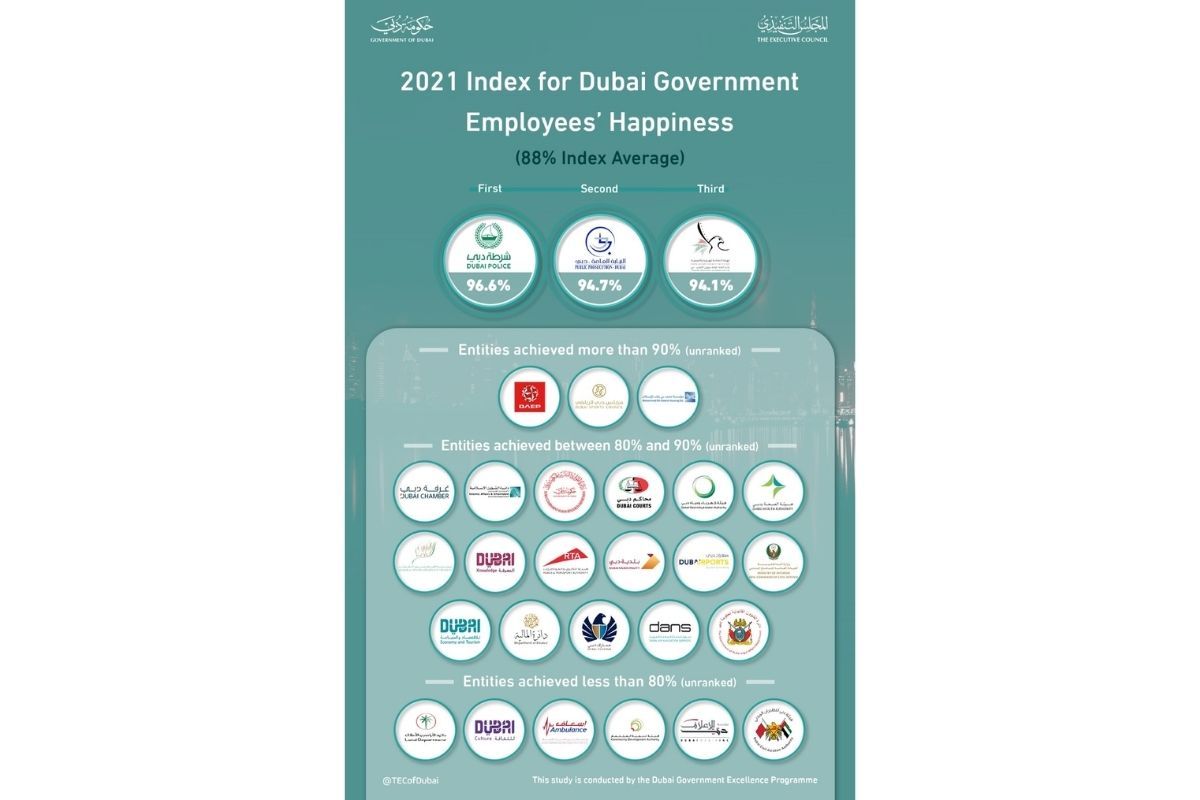 "The results of the Government of Dubai Employees and Customers Happiness Indices for 2021 reflect the high standards of excellence that His Highness Sheikh Mohammed bin Rashid Al Maktoum, Vice President and Prime Minister of the UAE and Ruler of Dubai, has instilled in the government sector and His Highness’s vision for providing the world’s best government services to the Dubai community. Our ability to achieve His Highness’s vision is clearly demonstrated by the progress seen in the results. The Employee Happiness Index and Customer Happiness Index reached 88% and 86.3%, respectively, with customer satisfaction increasing from 2020 ratings."