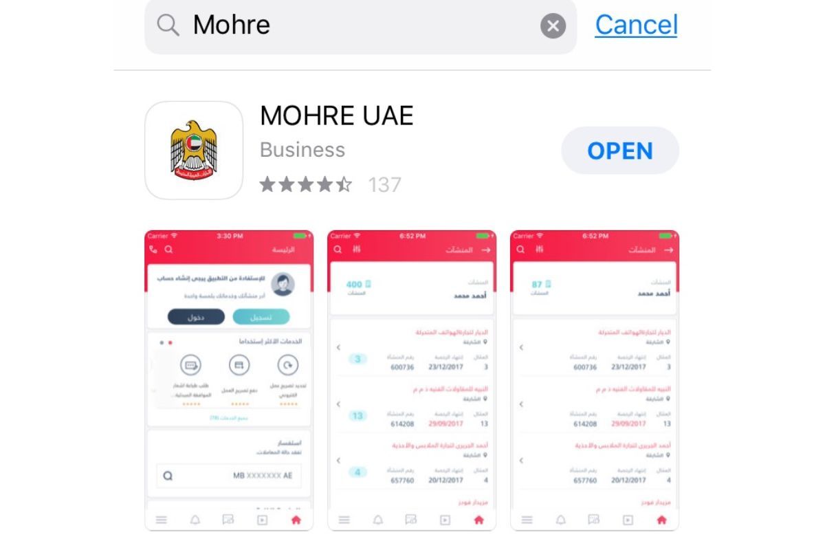 - Download the MOHRE app via Play Store or iOS