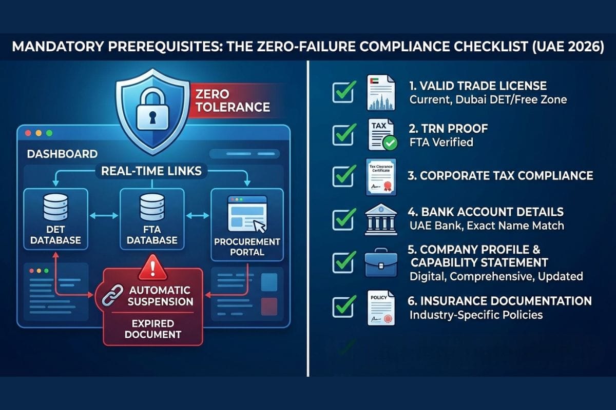 In 2026, government procurement systems across the UAE are linked in real-time with regulatory databases. This means if one document is expired in the Department of Economy and Tourism (DET) system, your vendor application will be automatically suspended or rejected without manual review. There is zero tolerance for incomplete or outdated documentation.