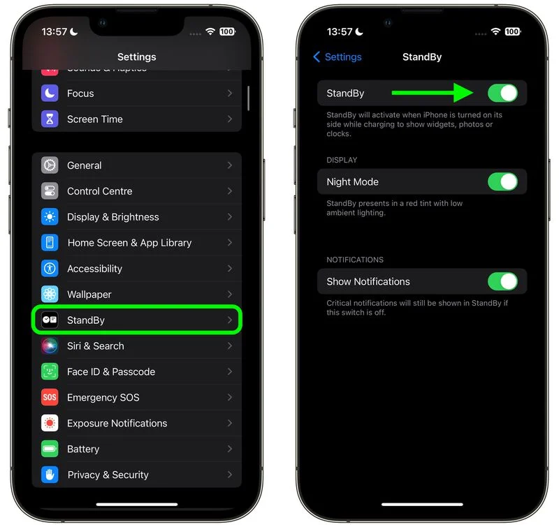 StandBy is activated by default, but you can manually enable or disable it by navigating to Settings -> StandBy and toggling the StandBy switch.