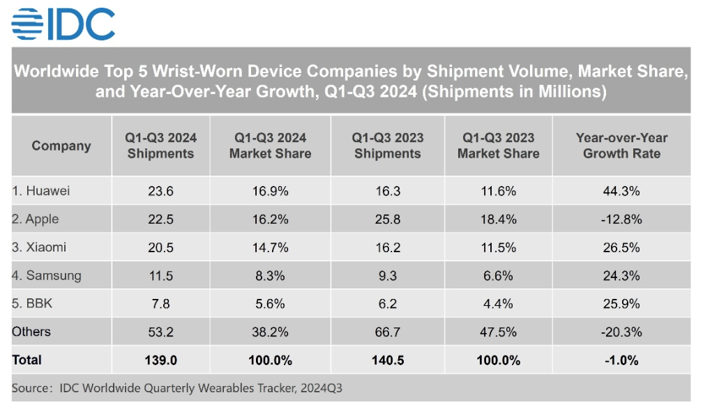 Huawei has cemented its position as the leader in the global wearable device market, ranking first in IDC’s Global Wearable Device Market Quarterly Tracking Report for the first three quarters of 2024.