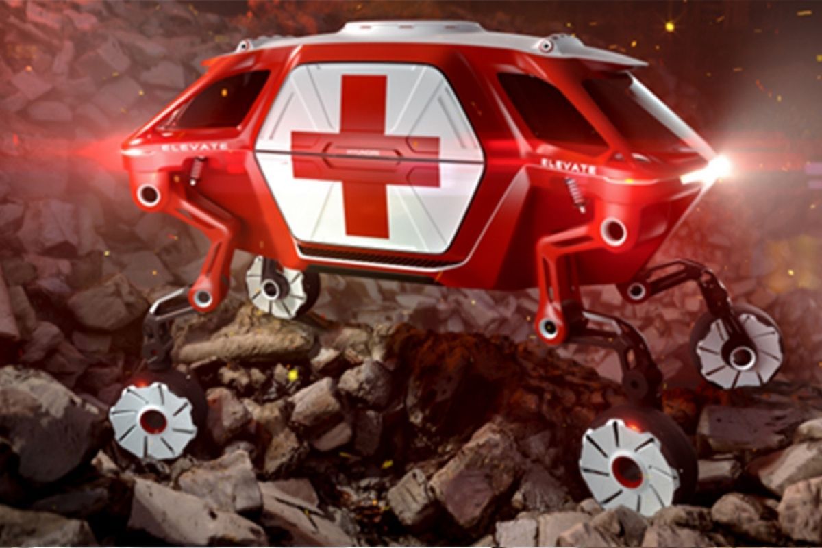 The Hyundai Elevate ultimate mobility vehicle (UMV) concept’s sure-footed ability to navigate irregular ground provides the versatility required during rescue situations, such as after an earthquake.