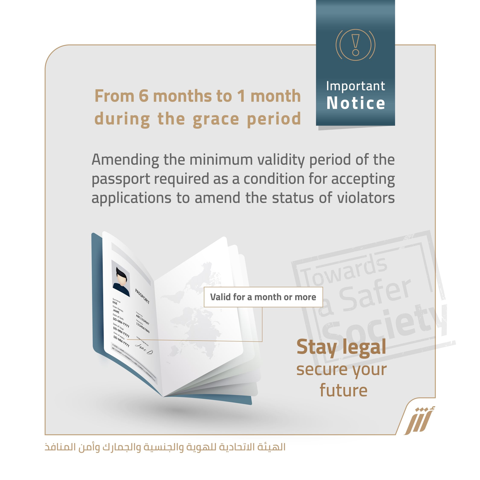 The Federal Authority for Identity and Citizenship, Customs and Ports Security (ICP) has announced a significant amendment to the passport validity requirement for residency and visa violators during the grace period from September 1 to October 31, 2024.