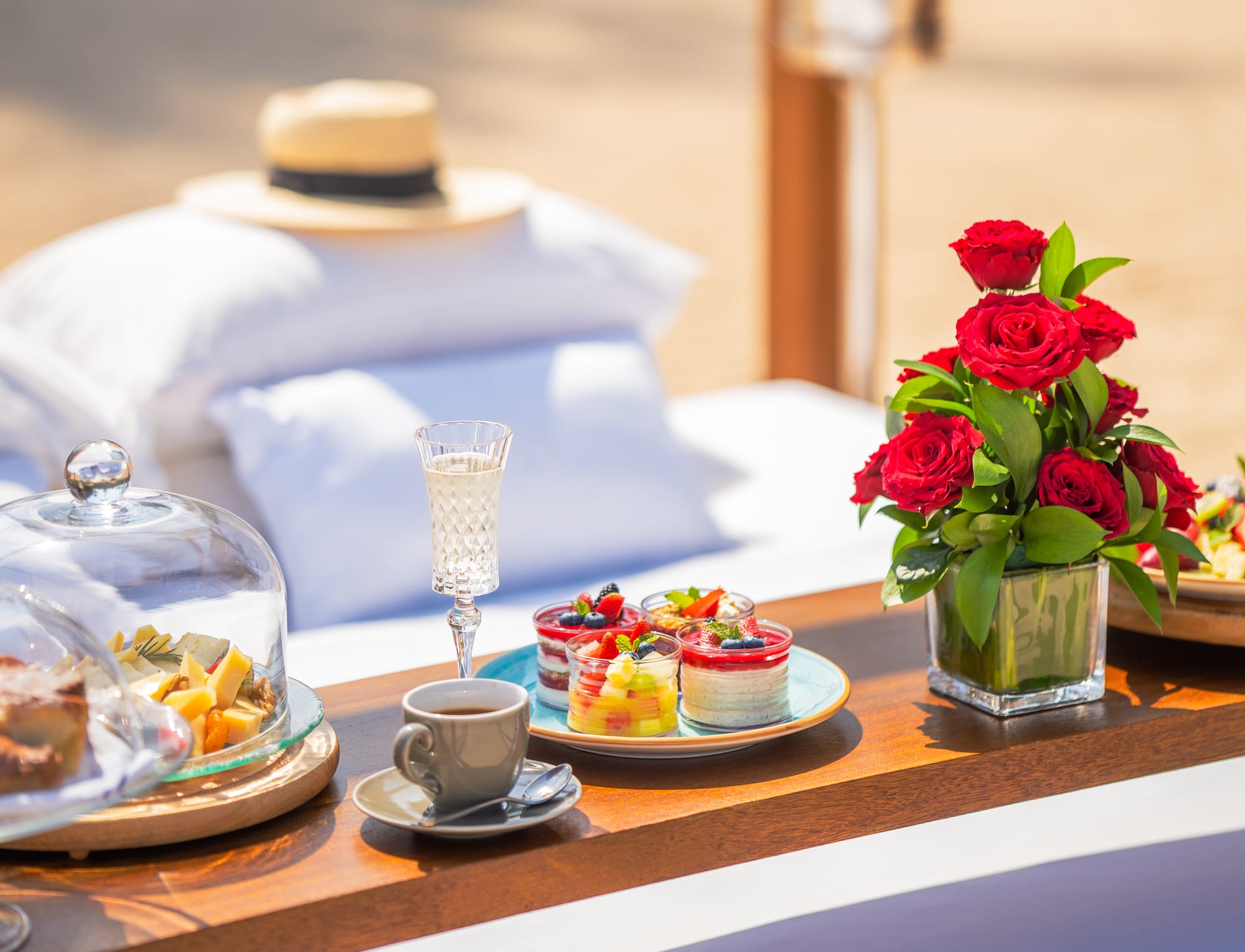 Start your day with romance at Palm Tree Court Beach, enjoying a lavish breakfast in a private cabana by the shore. Indulge in fresh pastries and gourmet dishes while listening to the soothing waves, making your Valentine’s celebration truly unforgettable.