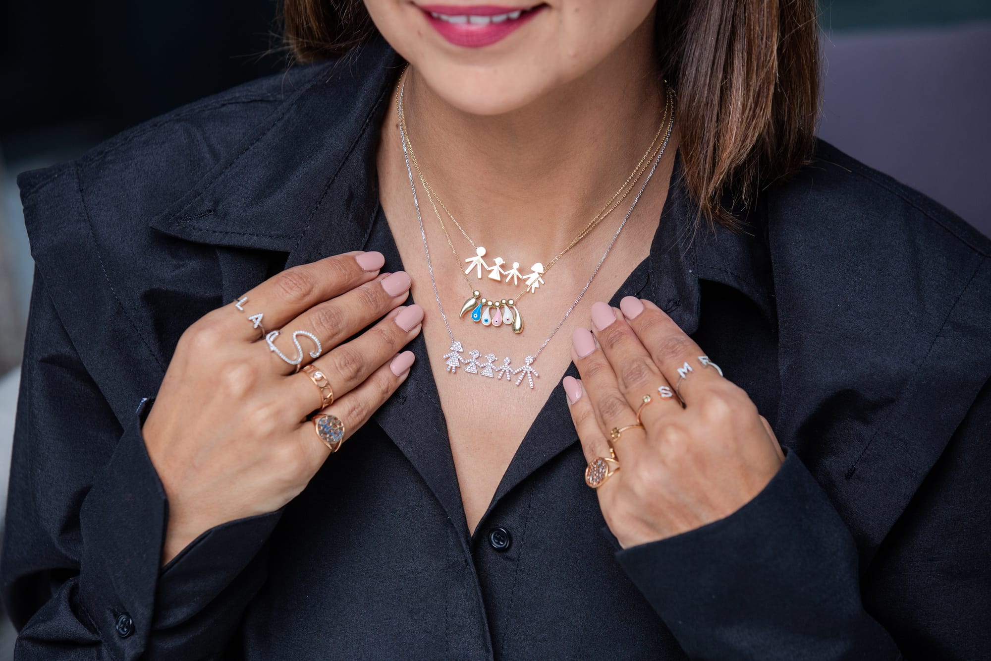 After my third child was born, I realized I couldn’t commit to office hours with the family business, Pure Gold Jewelers, where I’d been working since university. Even while staying at home, I was always designing and sketching concepts, creating pieces for myself and friends and family. One of those pieces, a necklace inspired by my three children, received so much love from people around me that it sparked something within me.