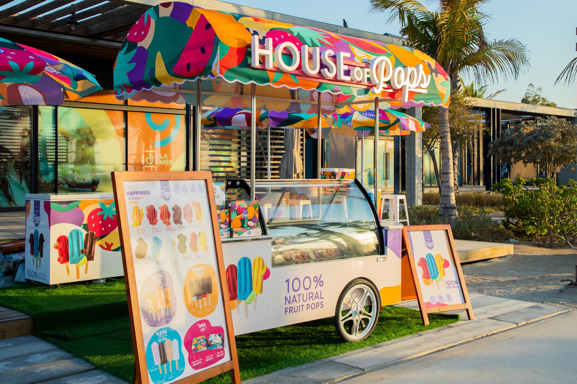 These kiosks allow them to fully immerse consumers in the House of Pops experience, from the branding to the warm welcome from promoters and detailed explanations about the products. This direct interaction with customers has proven invaluable, making the kiosks their "kingdom" where they can best convey their brand's values and message. Consequently, the kiosks also generate the highest revenue, particularly in outdoor settings, reinforcing their importance in the overall distribution strategy.