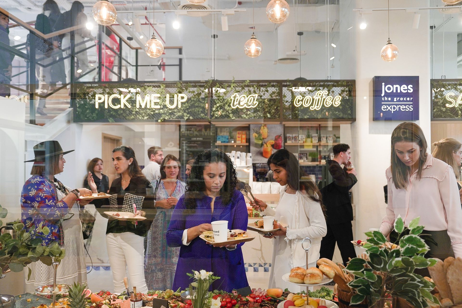 The space hosts a café where patrons can eat and socialise, run by Jones the Grocer.