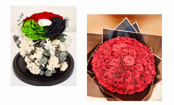 Forever roses in different colors and custom floral arrangements