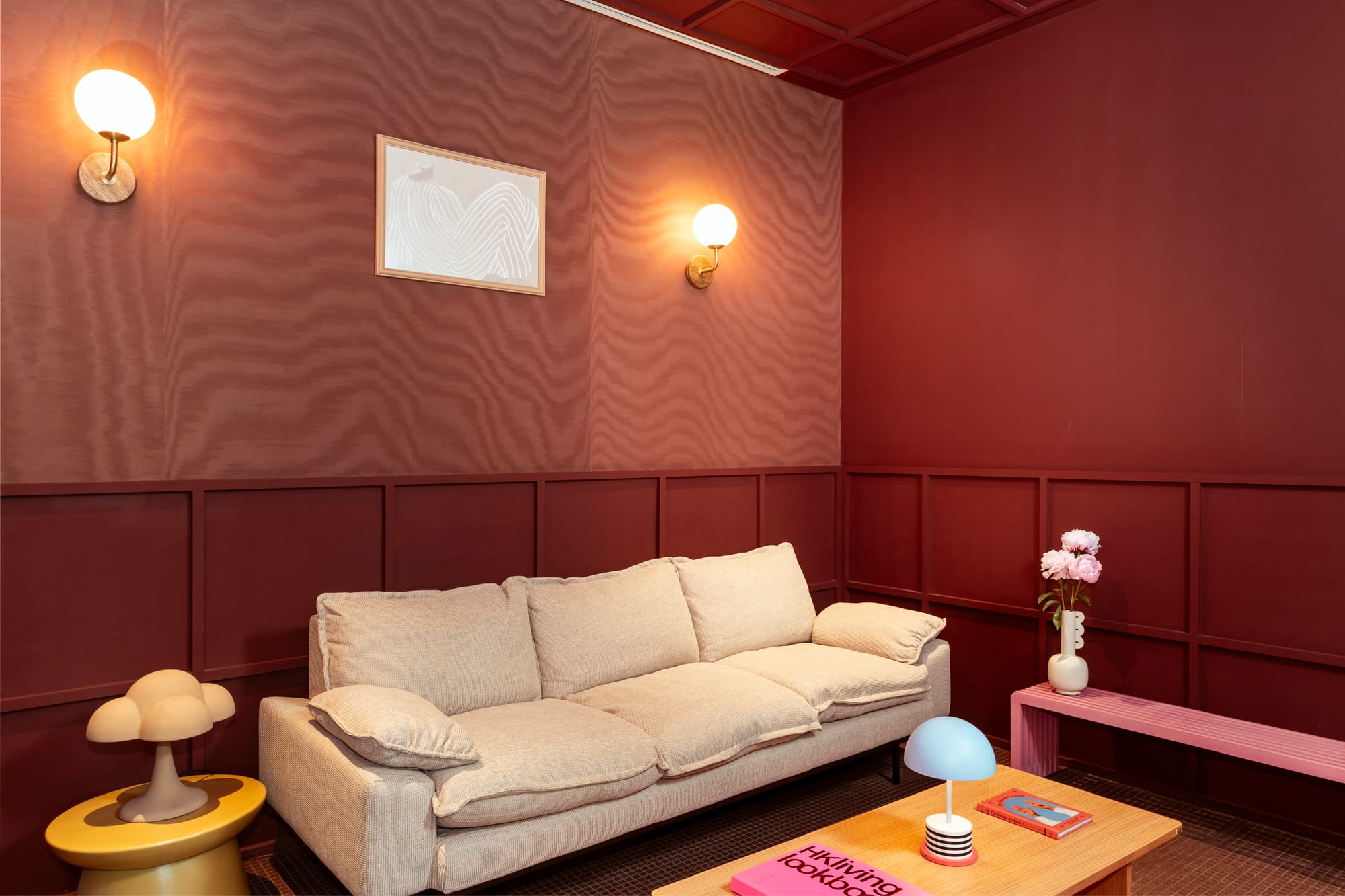 Besides working with Collectus Studio, we're collaborating with Urban Nest, the distributor for HK Living and several other Scandinavian brands. They have fitted out most of the tea room we're in right now. We also feature local artists on our frame walls, and many of the accessories and elements in our shadow shelves in the event rooms are local products.