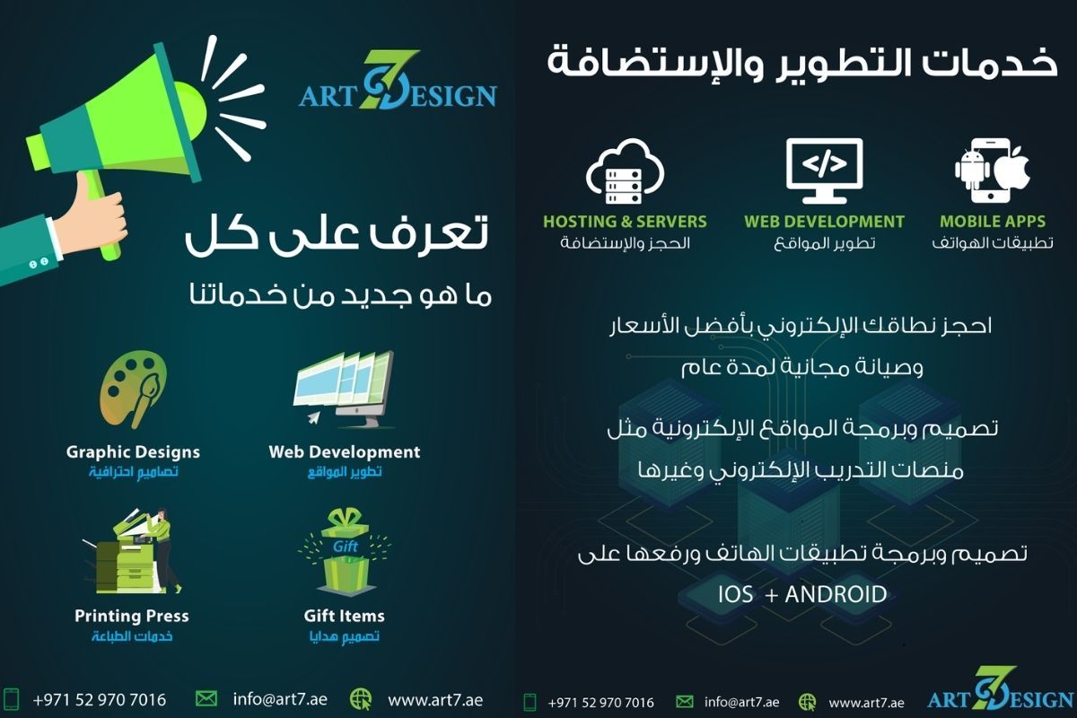 Professional designs, developing digital and smart platforms, speed and quality in delivery, 24h communication service, our employees speak Arabic, English and French languages, easy and flexible payments, competitive prices, awe are a national company supported by the government.